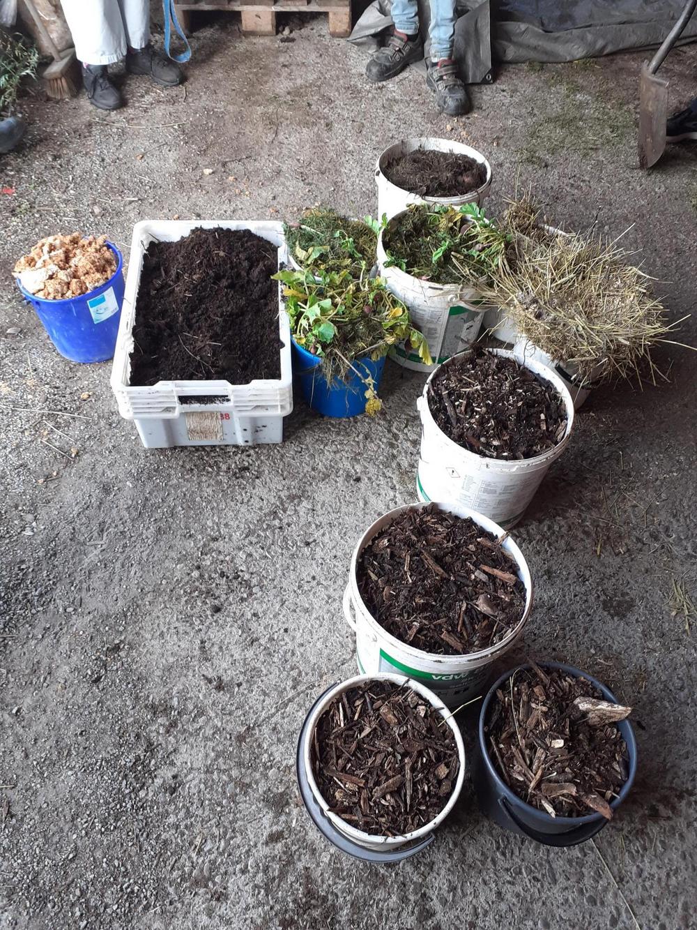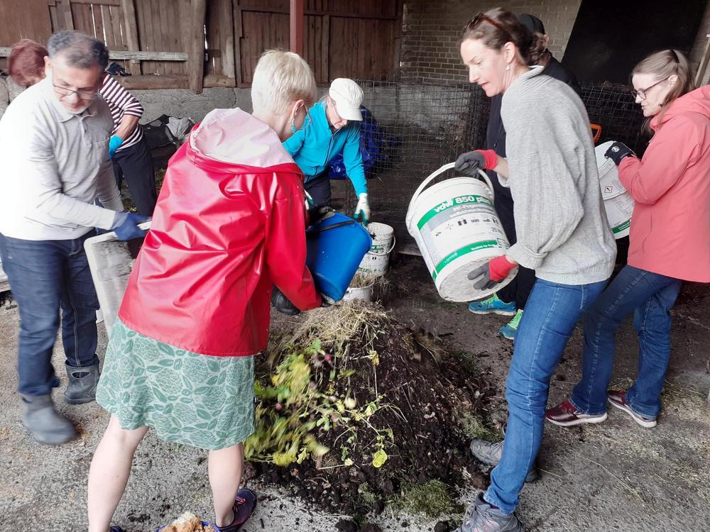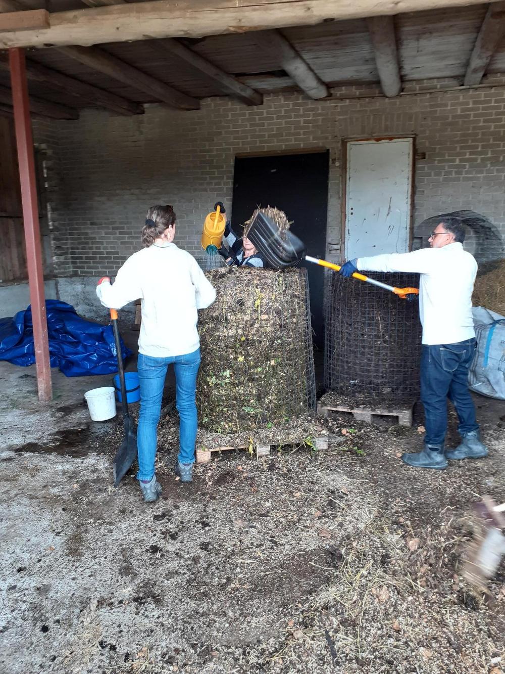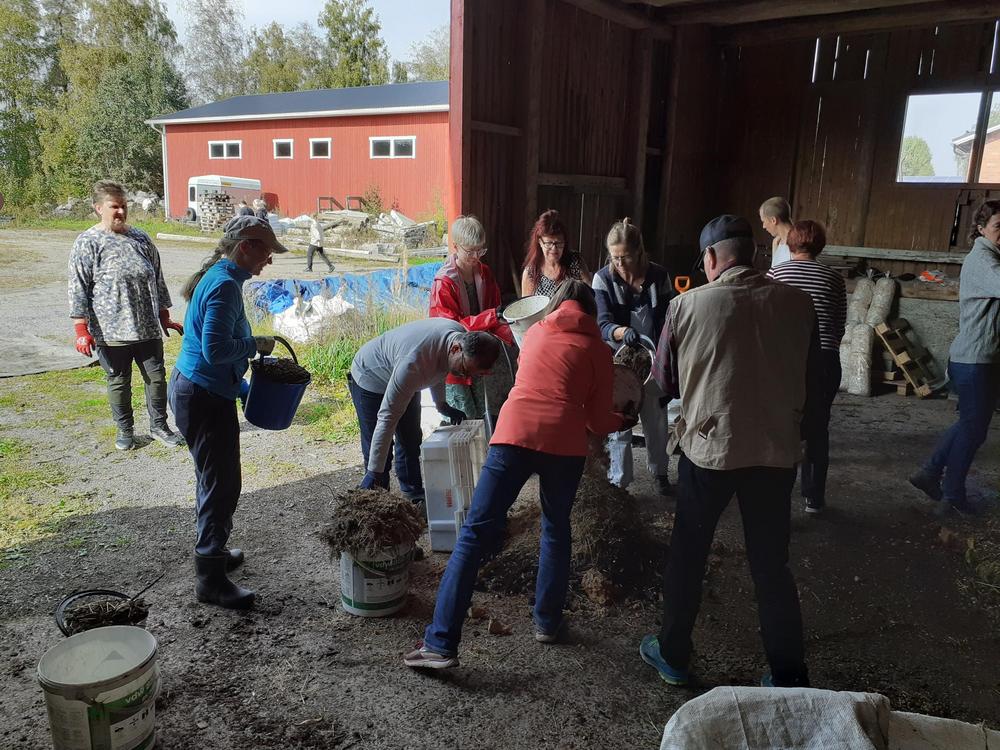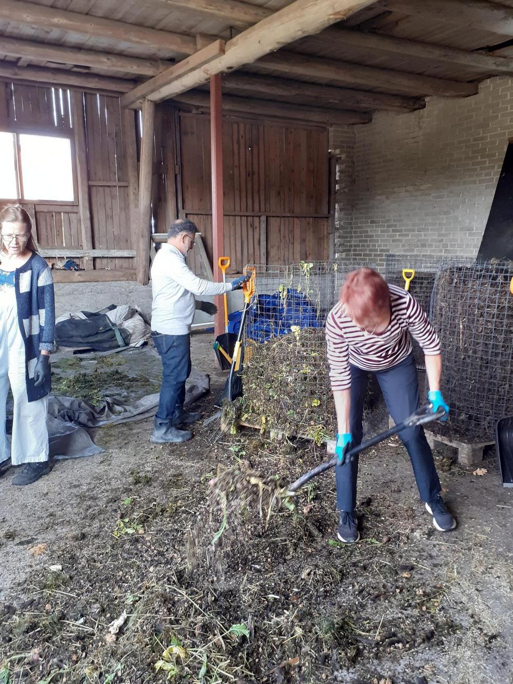 Teorian läpikäymisen jälkeen päästiin kasaamaan kompostia. Tunnelmia kurssipäivästä: